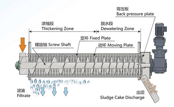 三、QYDLJ疊螺機(jī)脫水原理: